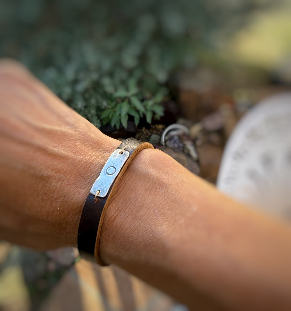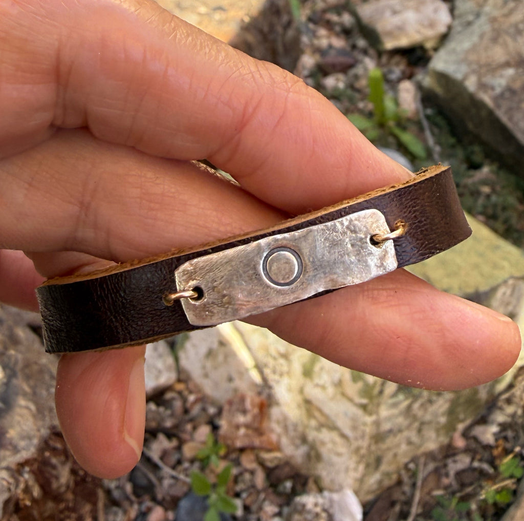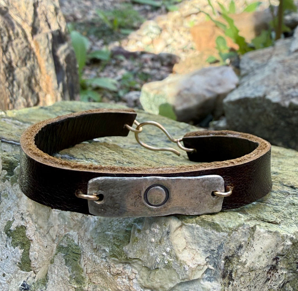 Simple, elegant, everyday. This piece is made with sterling silver, leather and a 12KT gf clasp.