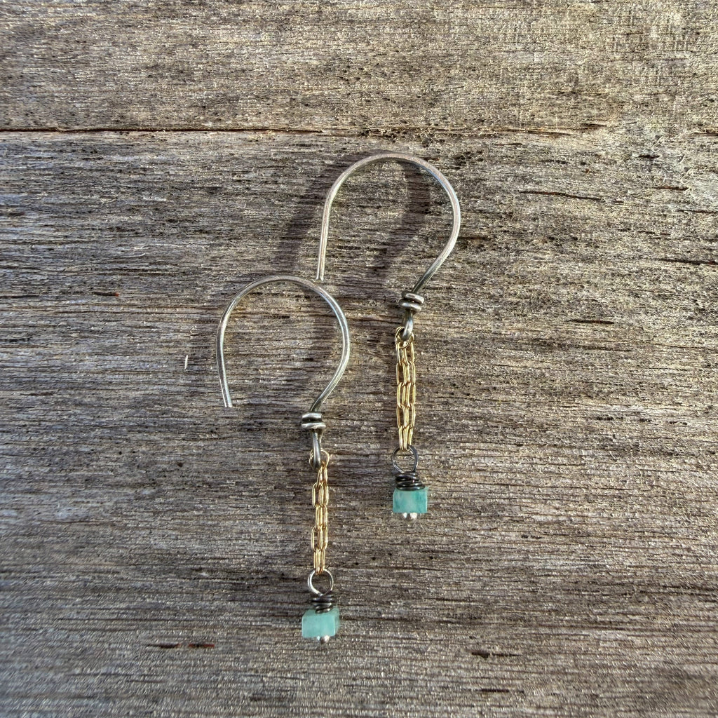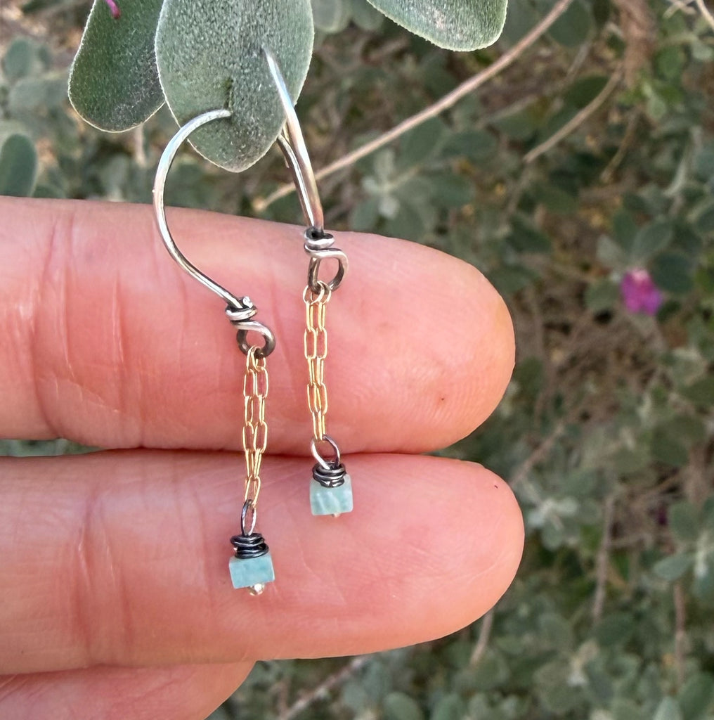 So cute and dainty, these earrings are made with amazonite, 14 KT gf and sterling silver.