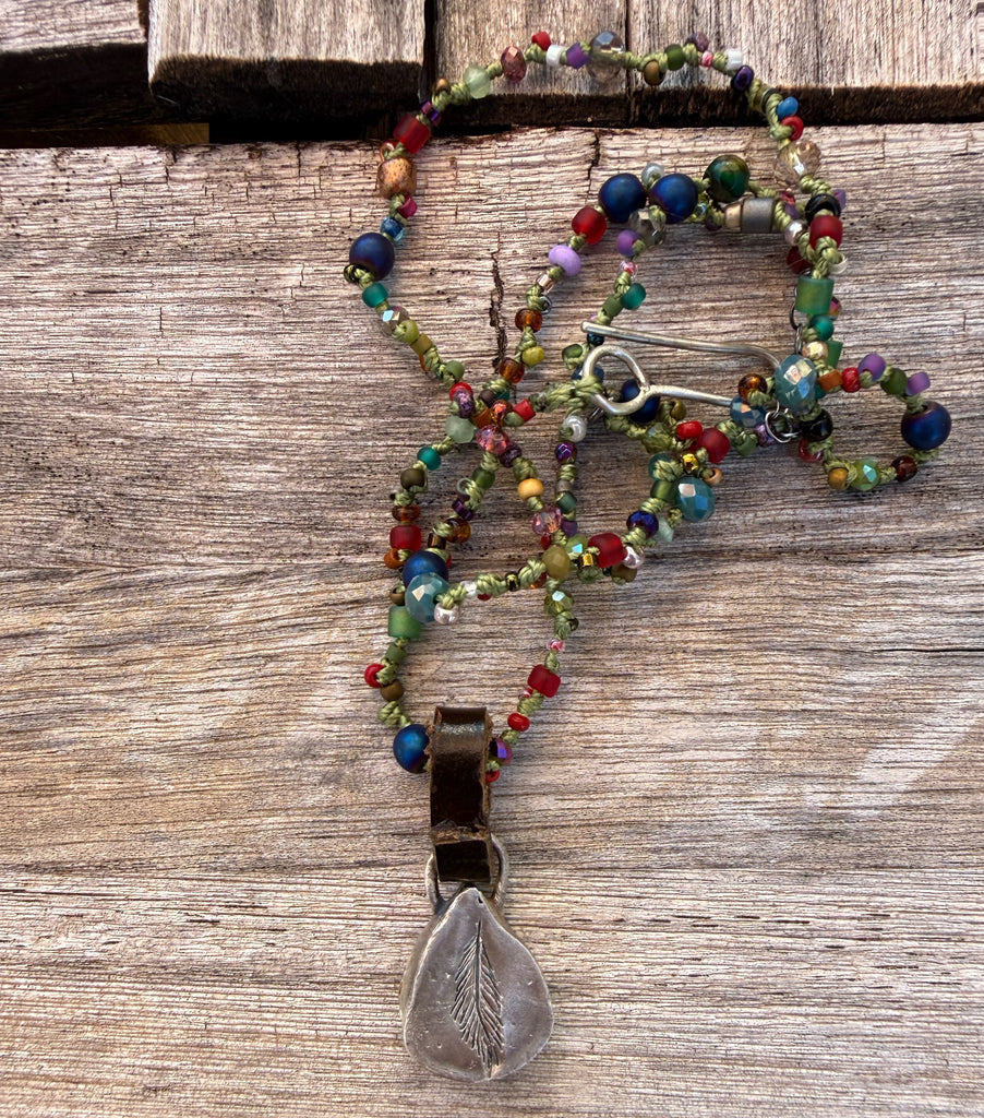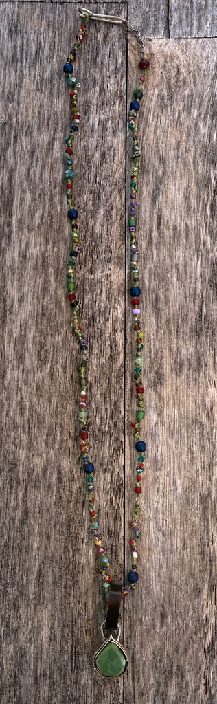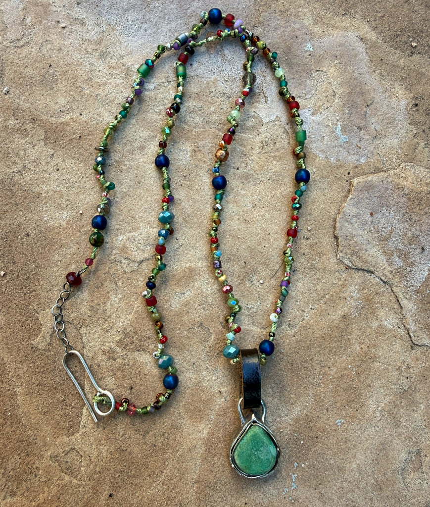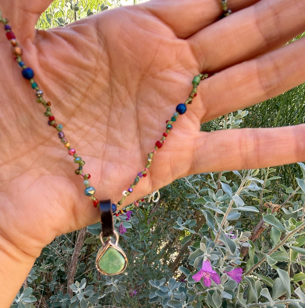 Adjustable up to 18 inches this stunning piece is made with colorful crystal beads, sterling silver and genuine turquoise.